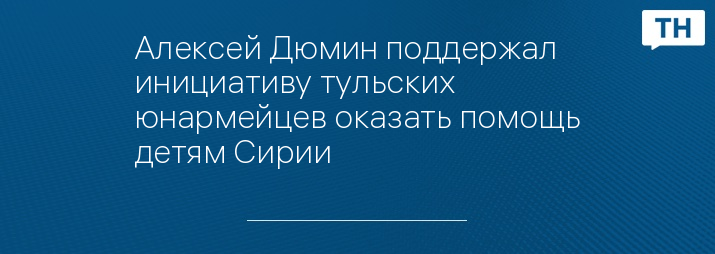 Алексей Дюмин поддержал инициативу тульских юнармейцев оказать помощь детям Сирии