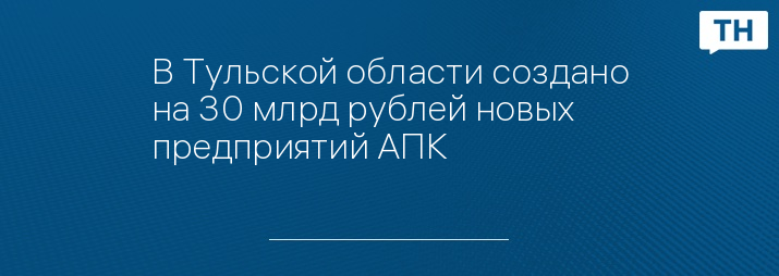 В Тульской области создано на 30 млрд рублей новых предприятий АПК