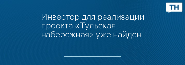 Инвестор для реализации проекта «Тульская набережная» уже найден