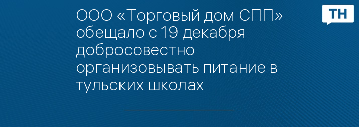 ООО «Торговый дом СПП» обещало с 19 декабря добросовестно организовывать питание в тульских школах