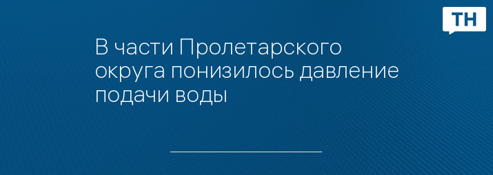 В части Пролетарского округа понизилось давление подачи воды