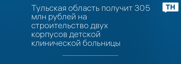 Тульская область получит 305 млн рублей на строительство двух корпусов детской клинической больницы