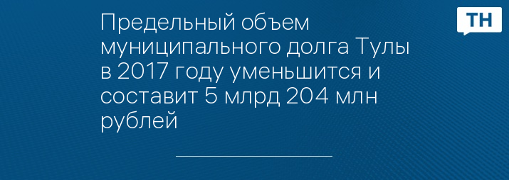 Предельный объем муниципального долга Тулы в 2017 году уменьшится и составит 5 млрд 204 млн рублей