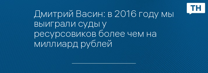 Дмитрий Васин: в 2016 году мы выиграли суды у ресурсовиков более чем на миллиард рублей