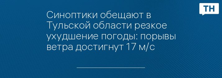 Синоптики обещают в Тульской области резкое ухудшение погоды: порывы ветра достигнут 17 м/с