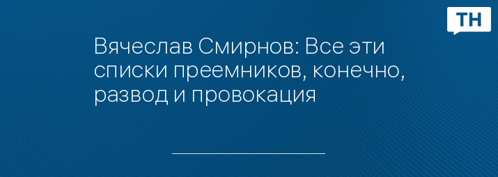 Вячеслав Смирнов: Все эти списки преемников, конечно, развод и провокация