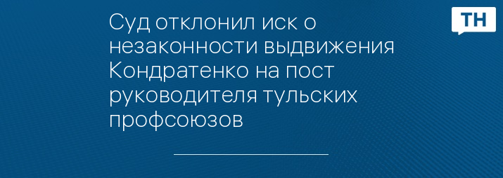 Суд отклонил иск о незаконности выдвижения Кондратенко на пост руководителя тульских профсоюзов