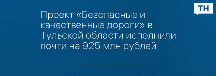 Проект «Безопасные и качественные дороги» в Тульской области исполнили почти на 925 млн рублей