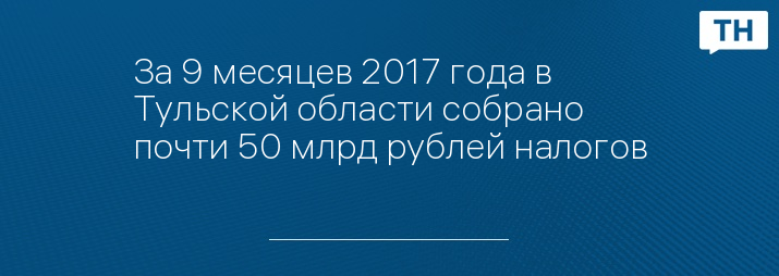 За 9 месяцев 2017 года в Тульской области собрано почти 50 млрд рублей налогов