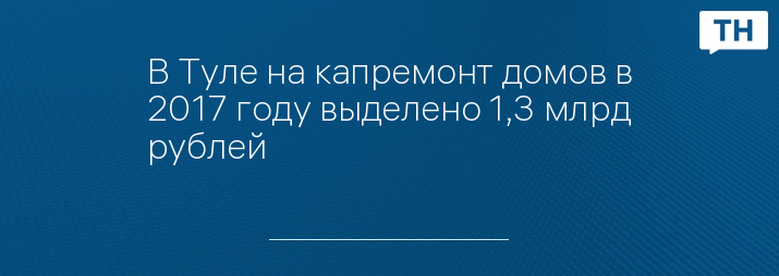 В Туле на капремонт домов в 2017 году выделено 1,3 млрд рублей