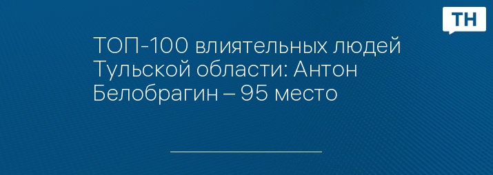 ТОП-100 влиятельных людей Тульской области: Антон Белобрагин – 95 место