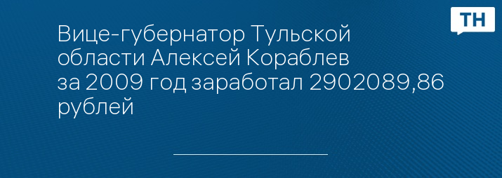 Вице-губернатор Тульской области Алексей Кораблев за 2009 год заработал 2902089,86 рублей