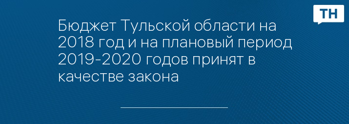 Бюджет Тульской области на 2018 год и на плановый период 2019-2020 годов принят в качестве закона