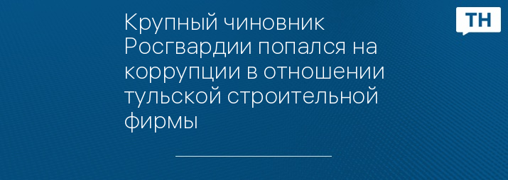 Крупный чиновник Росгвардии попался на коррупции в отношении тульской строительной фирмы
