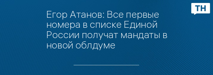 Егор Атанов: Все первые номера в списке Единой России получат мандаты в новой облдуме