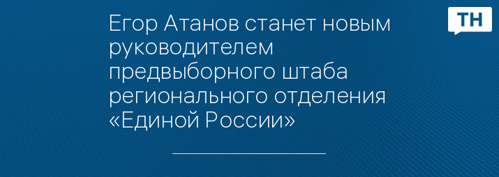 Егор Атанов станет новым руководителем предвыборного штаба регионального отделения «Единой России»
