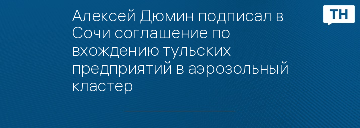 Алексей Дюмин подписал в Сочи соглашение по вхождению тульских предприятий в аэрозольный кластер