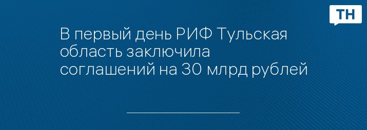 В первый день РИФ Тульская область заключила соглашений на 30 млрд рублей