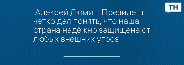 Алексей Дюмин: Президент четко дал понять, что наша страна надёжно защищена от любых внешних угроз