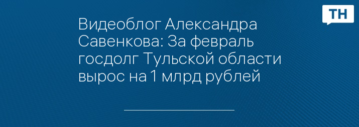 Видеоблог Александра Савенкова: За февраль госдолг Тульской области вырос на 1 млрд рублей