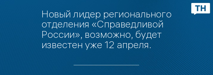 Новый лидер регионального отделения «Справедливой России», возможно, будет известен уже 12 апреля.