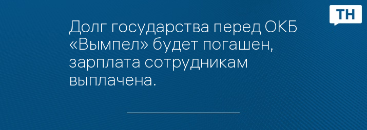 Долг государства перед ОКБ «Вымпел» будет погашен, зарплата сотрудникам выплачена.
