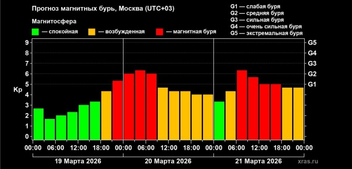 Тульскую область с 19 по 21 марта накроют магнитные бури классов G1 и G2
