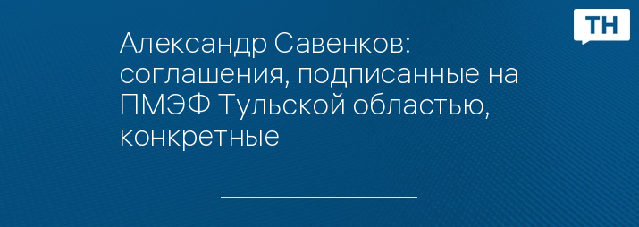 Александр Савенков: соглашения, подписанные на ПМЭФ Тульской областью, конкретные