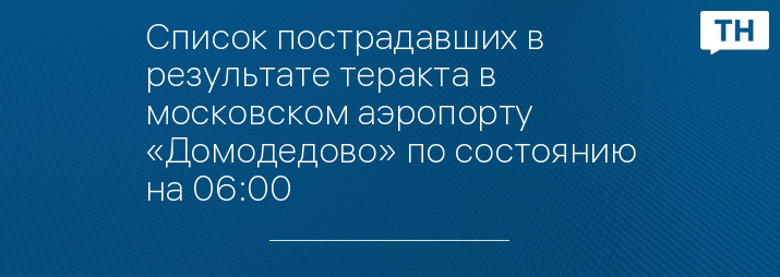 Список пострадавших в результате теракта в московском аэропорту «Домодедово» по состоянию на 06:00