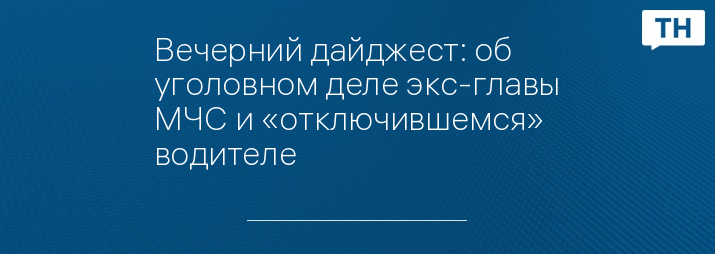 Вечерний дайджест: об уголовном деле экс-главы МЧС и «отключившемся» водителе
