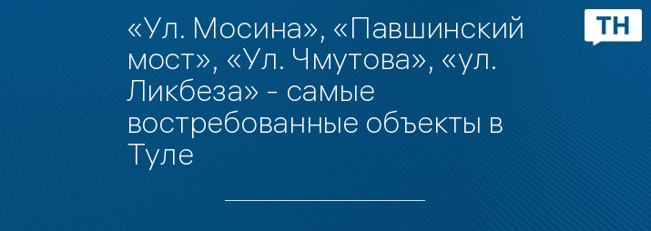 «Ул. Мосина», «Павшинский мост», «Ул. Чмутова», «ул. Ликбеза» - самые востребованные объекты в Туле