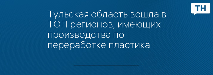 Тульская область вошла в ТОП регионов, имеющих производства по переработке пластика