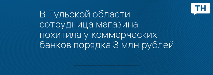 В Тульской области сотрудница магазина похитила у коммерческих банков порядка 3 млн рублей