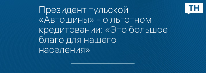 Президент тульской «Автошины» - о льготном кредитовании: «Это большое благо для нашего населения»