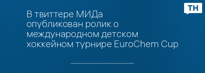 В твиттере МИДа опубликован ролик о международном детском хоккейном турнире EuroChem Cup