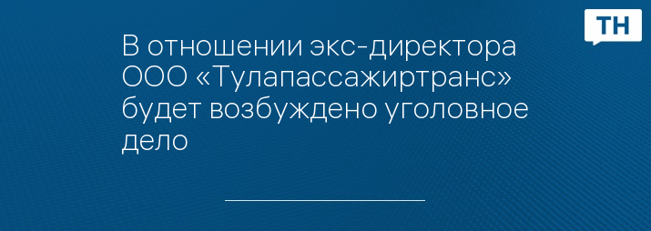 В отношении экс-директора ООО «Тулапассажиртранс» будет возбуждено уголовное дело