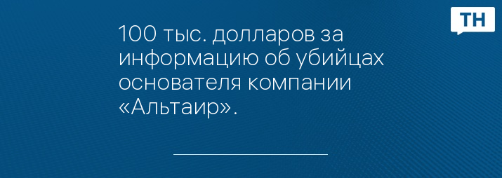 100 тыс. долларов за информацию об убийцах основателя компании «Альтаир».