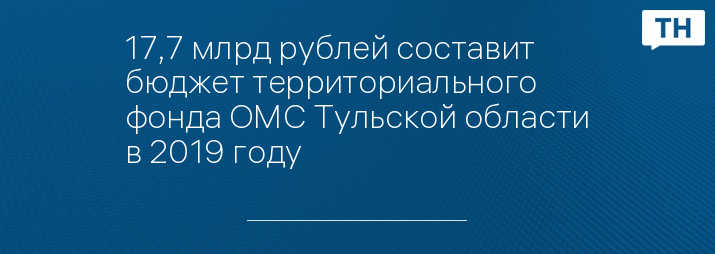 Как следует из текста пояснительной записки к проекту ЗТО «О бюджете территориального фонда обязательного медицинского страхования Тульской области на 2019 год и на плановый период 2020 и 2021 годов», бюджет Фонда в следующем году составит 17 млрд 714 млн 190 тыс. рублей.