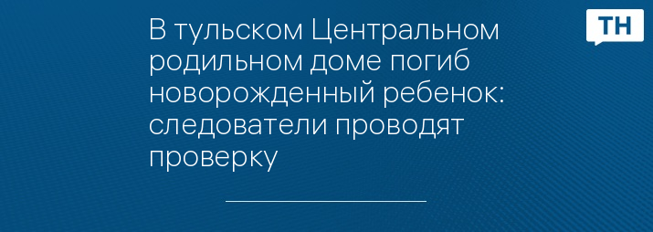 В тульском Центральном родильном доме погиб новорожденный ребенок: следователи проводят проверку