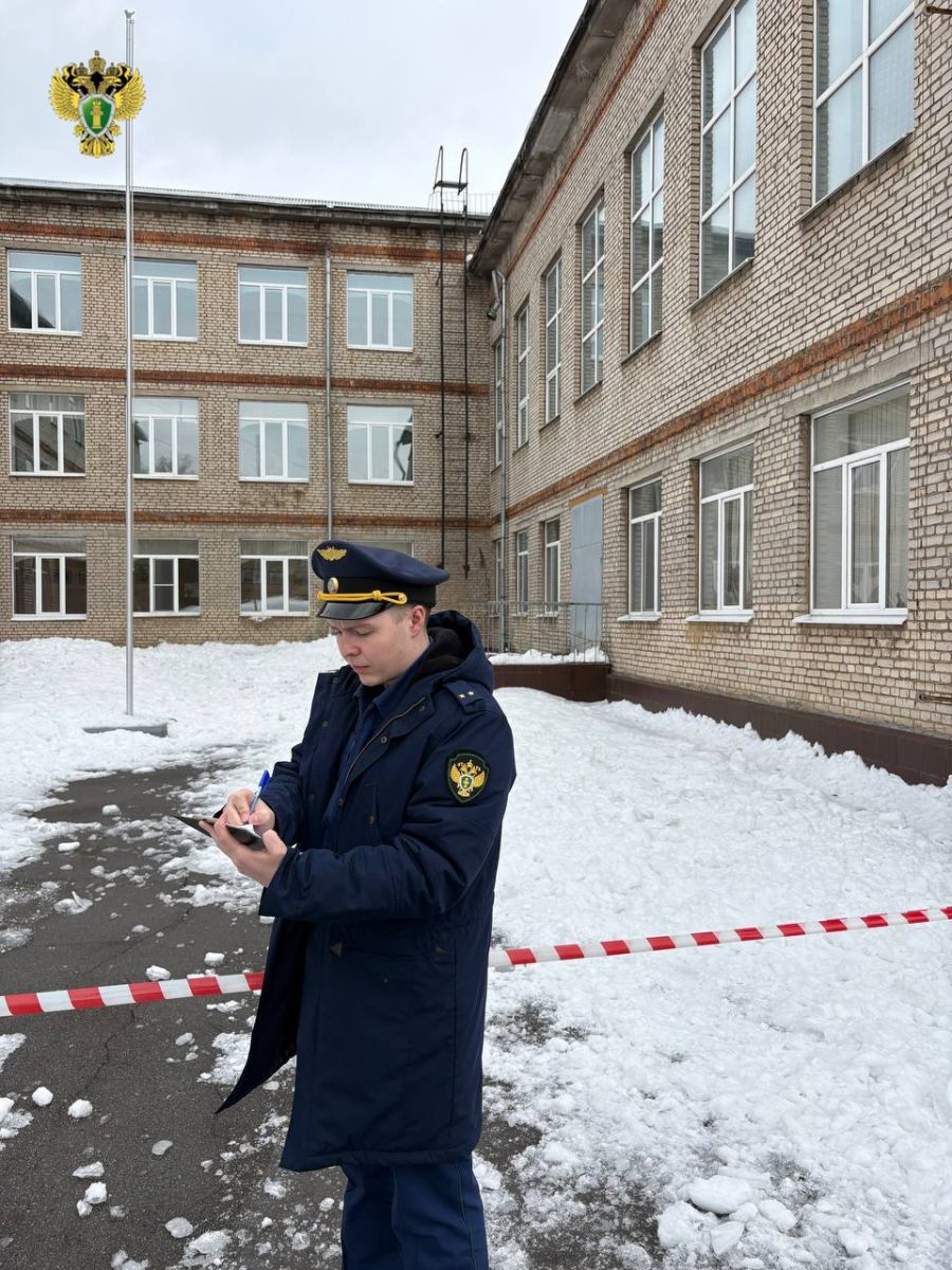 Скопление снега в школе №34 Тулы вызвало повреждение ограждения крыши