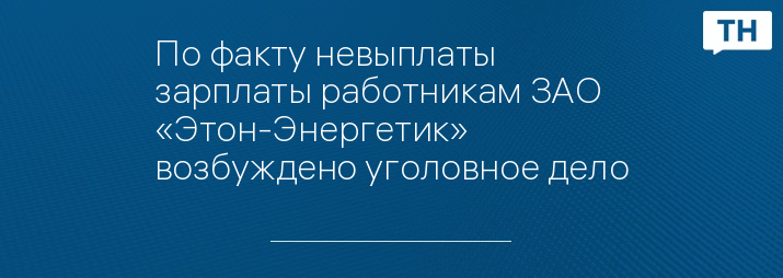 По факту невыплаты зарплаты работникам ЗАО «Этон-Энергетик» возбуждено уголовное дело