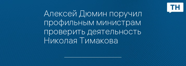 Алексей Дюмин поручил профильным министрам проверить деятельность Николая Тимакова