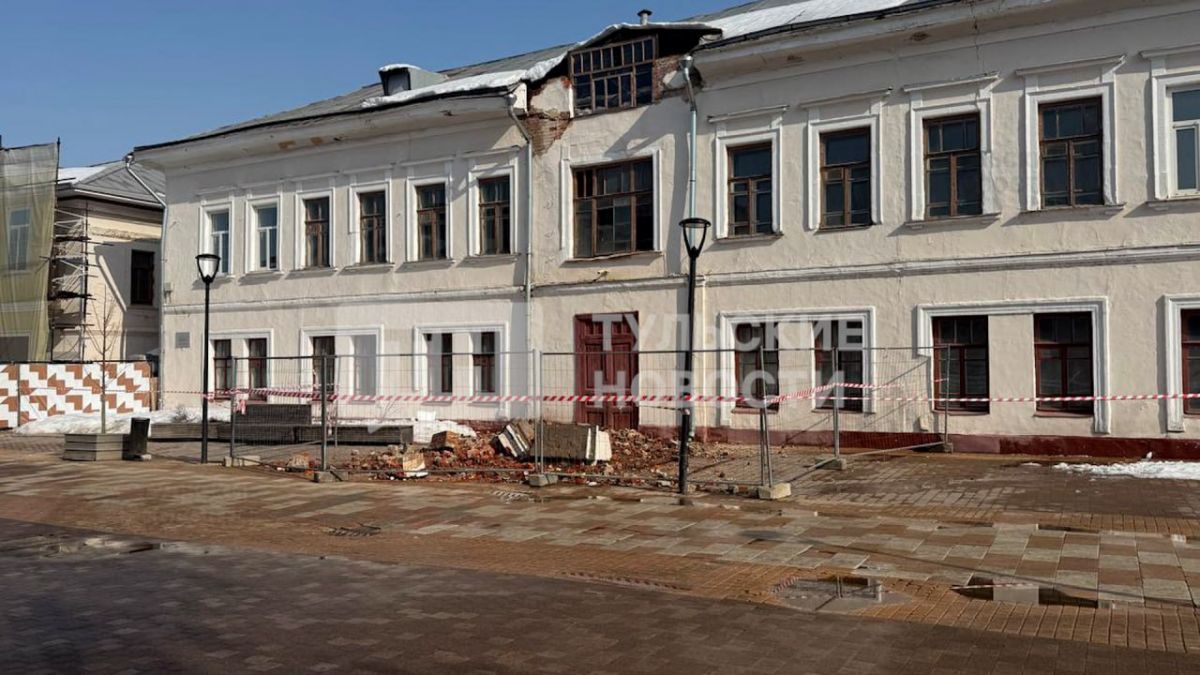 В Туле на улице Октябрьской обрушилась часть фасада старинного дома