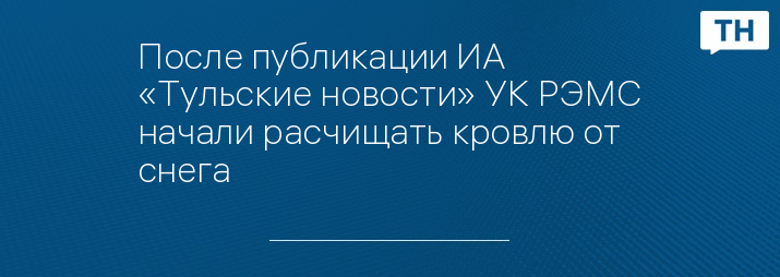 После публикации ИА «Тульские новости» УК РЭМС начали расчищать кровлю от снега