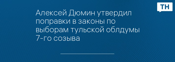 Губернатор Тульской области Алексей Дюмин утвердил поправки в законопроекты по выборам регионального парламента 7-го созыва. Законы опубликованы на сайте правительства региона.