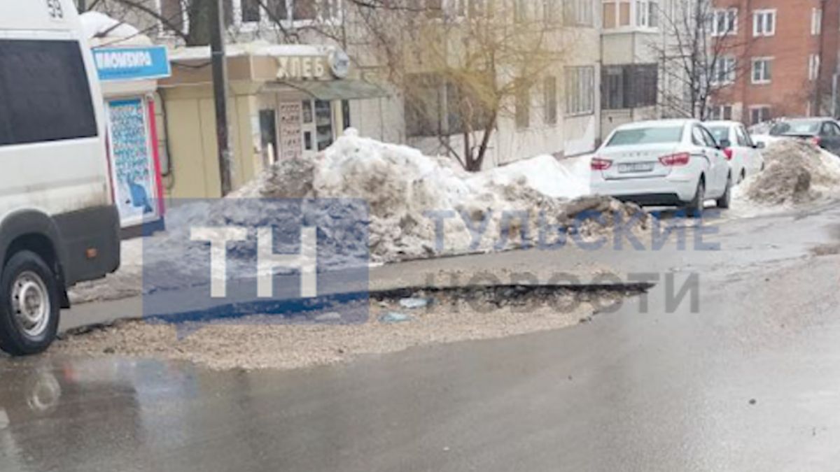 На улице Переносной в Туле после провала асфальта образовалась большая яма