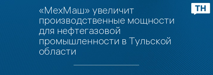 «МехМаш» увеличит производственные мощности для нефтегазовой промышленности в Тульской области