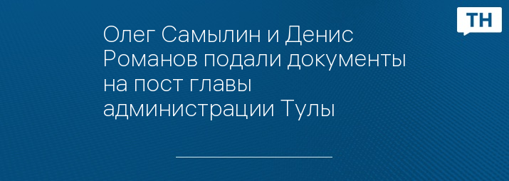 По нашей информации, на сегодняшний день Олег Самылин и Денис Романов подали документы на участие в конкурсе на пост сити-менеджера Тулы.