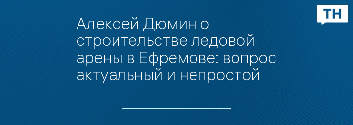 Алексей Дюмин о строительстве ледовой арены в Ефремове: вопрос актуальный и непростой