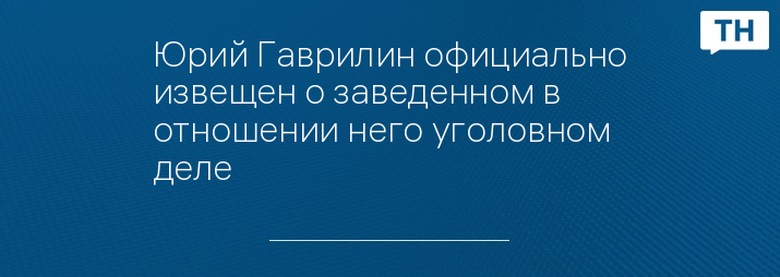Юрий Гаврилин официально извещен о заведенном в отношении него уголовном деле